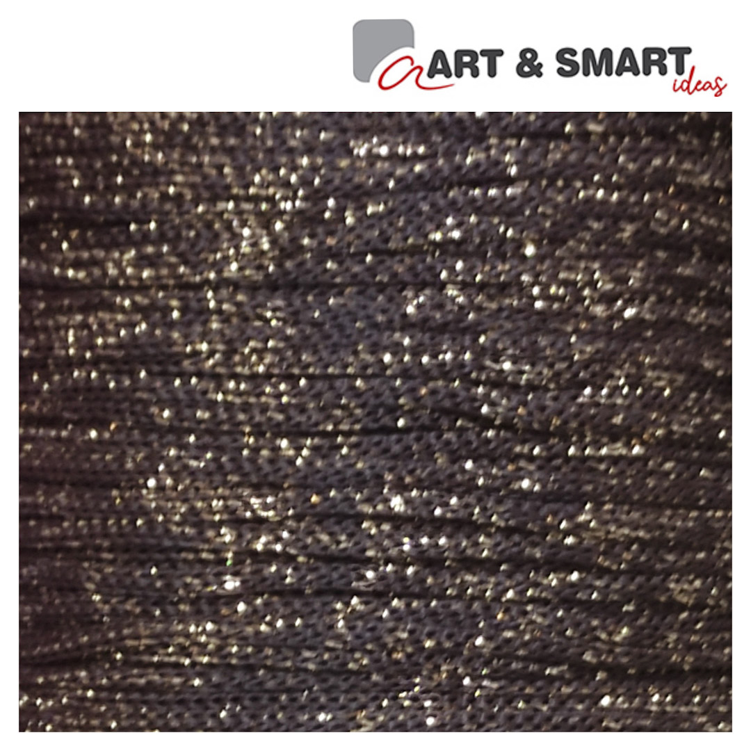 Νήμα 100% από πολυπροπυλένιο καφέ σκούρο No37 και μεταλλόνημα μπεζ, 3mm. Διάμετρος μπομπίνας 11,4cm. Ύψος 12,2cm. Βάρος 390gr. Μήκος 150m.