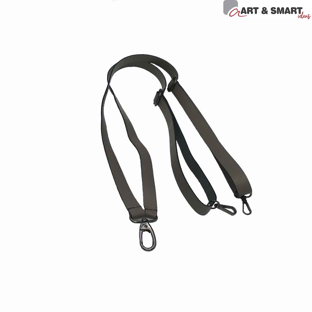 Δερμάτινα χερούλια πλάτης ρυθμιζόμενα με μεταλλικούς γάντζους, για να τοποθετούνται και να αφαιρούνται εύκολα. Χρώμα γκρι ελεφάντ, φάρδος 2cm.