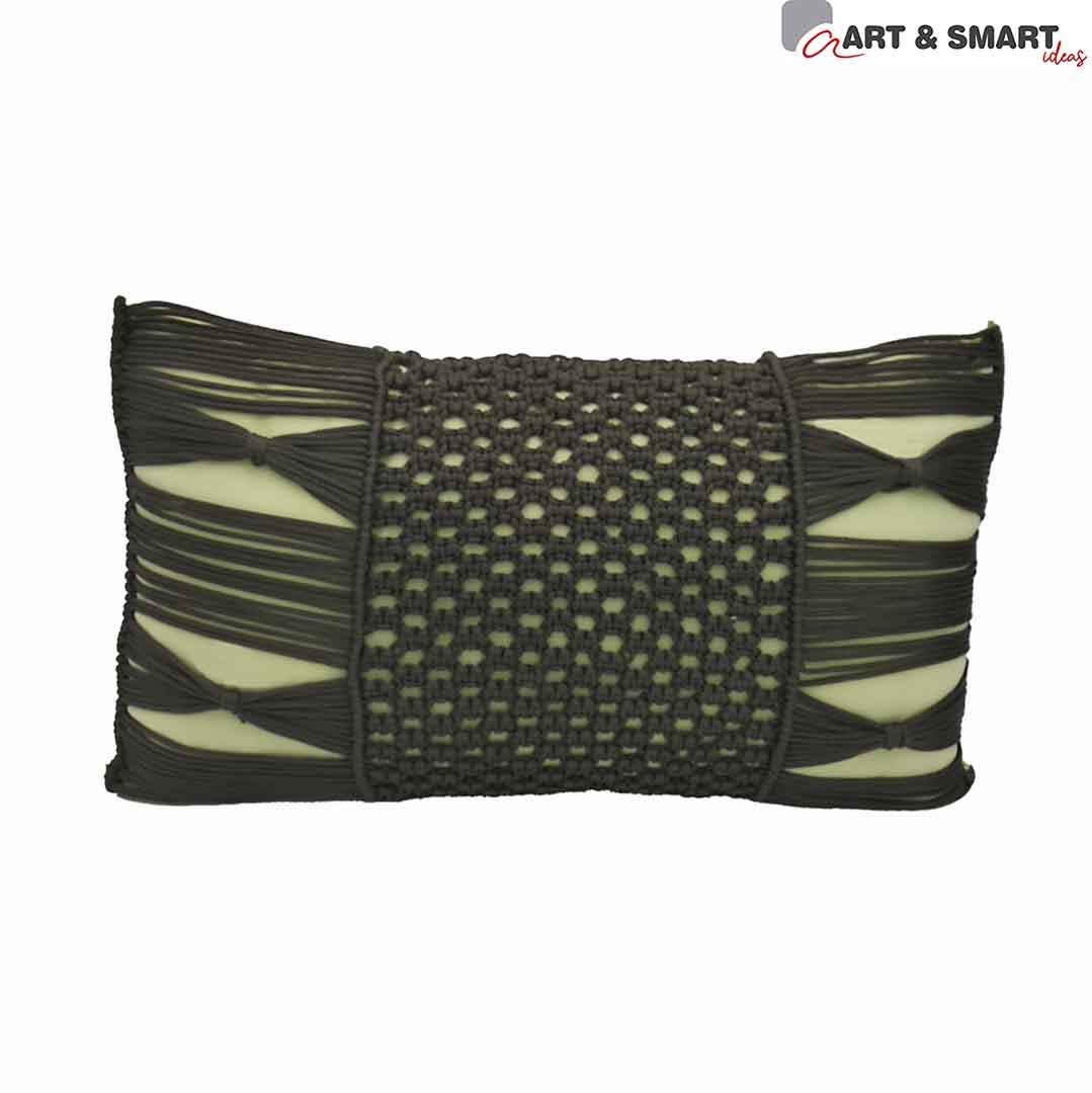 Διακοσμητικά μαξιλάρια μακραμέ χειροποίητα ,ελληνικά. Με υφασμάτινη θήκη με φερμουάρ για να μπορούν να αλλαχθούν. Το μακραμέ είναι ραμμένο επάνω στη θήκη. Λαχανί μαξιλάρι 50 Χ 30 cm με διακόσμηση μακραμέ σε πολυπροπυλένιο νήμα κυπαρισσί.