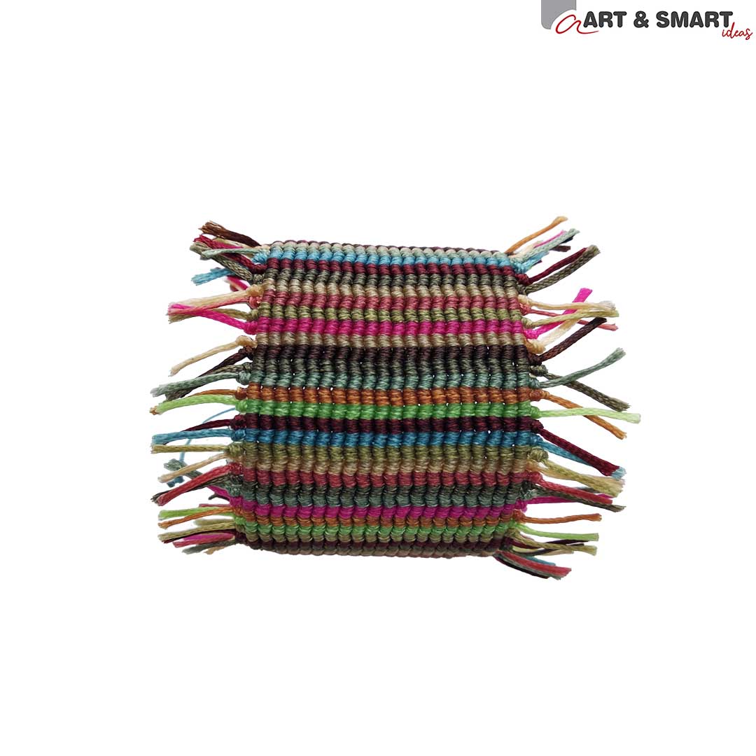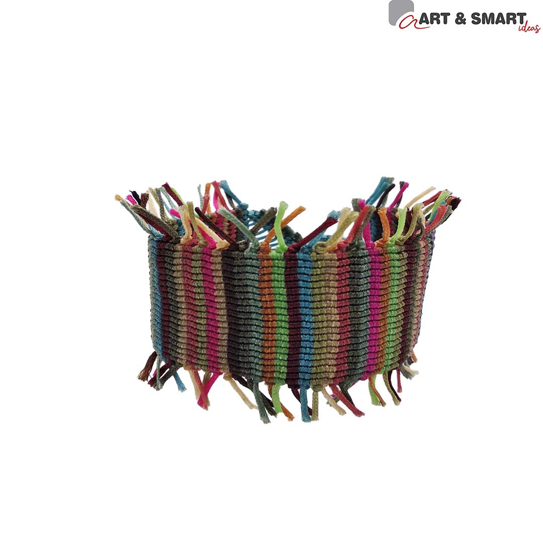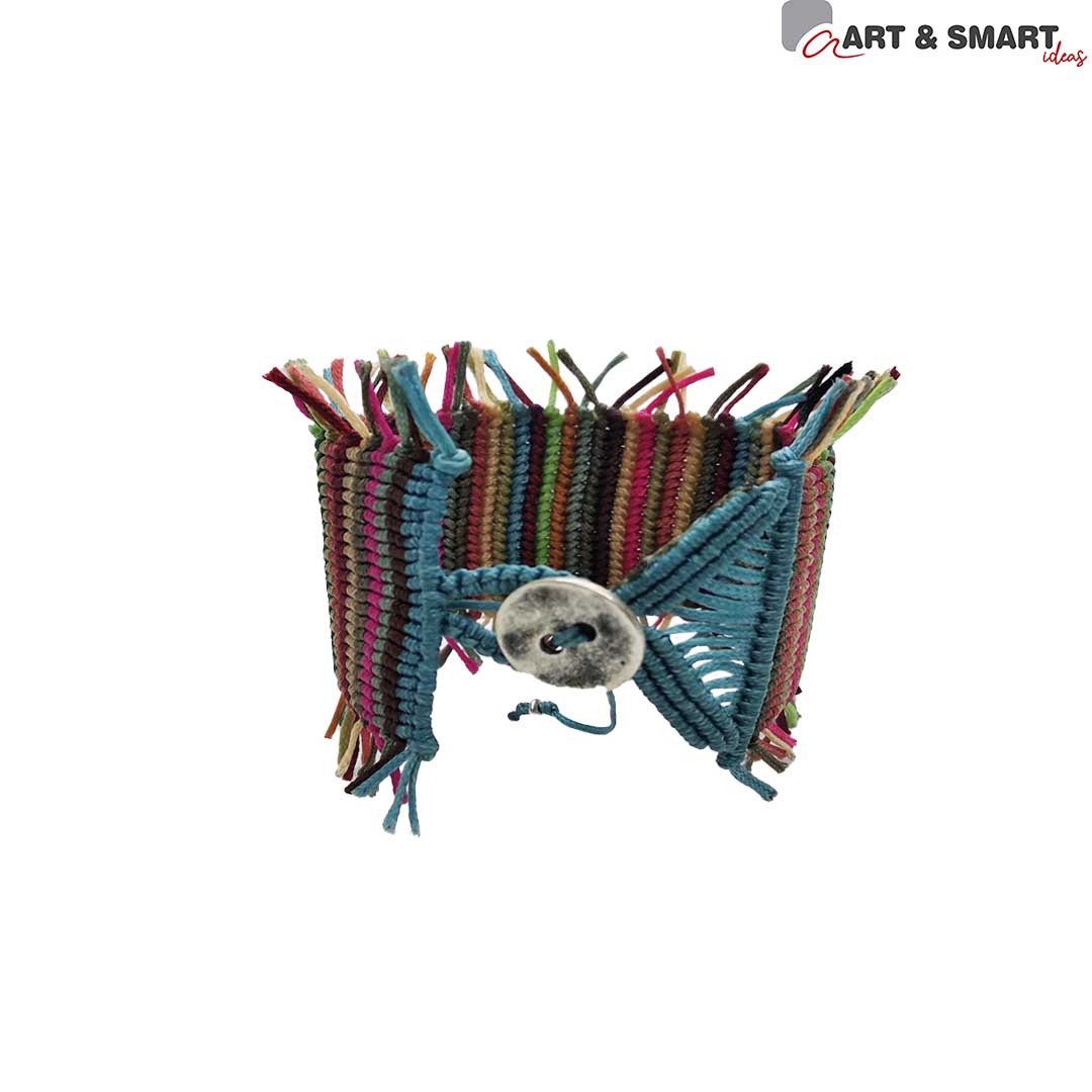 Βραχιόλι κουρελού με κρόσσια μακραμέ χειροποίητο φαρδύ με διάφορα χρώματα και ασημί μεταλλικό οβάλ κούμπωμα   στο κλείσιμο.